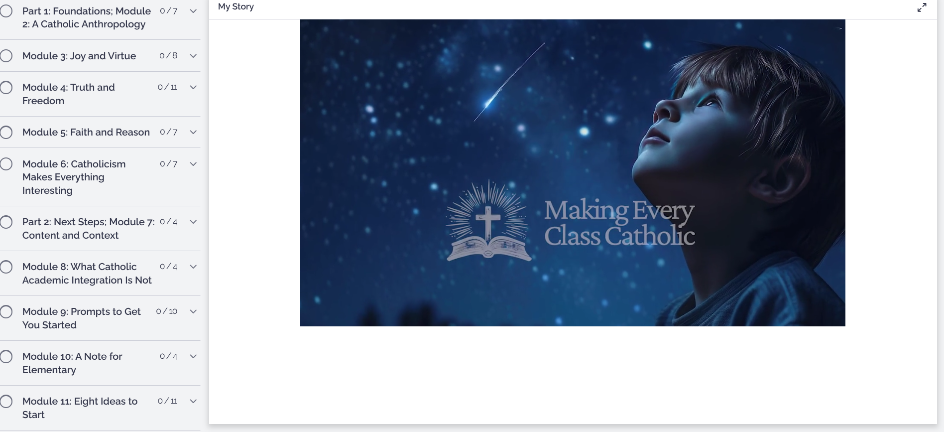 A 12-module eCourse leading teachers from foundational principles to classroom practice, equipping them with a shared framework, common language, and concrete starting points for integrating faith into every class—designed to be engaged in manageable segments over the school year. Created and hosted by Dr. Brett Salkeld, international speaker, author of Educating for Eternity, and founder of Making Every Class Catholic. This eCourse gives Catholic schools the tools they need to do what we all say matters—but few feel equipped to do well.